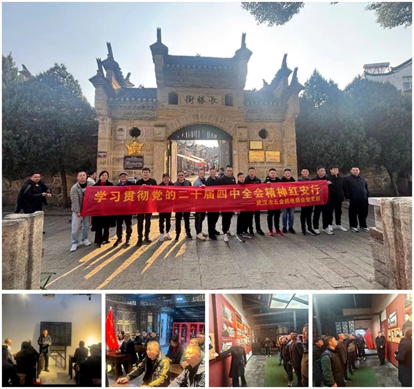 根据商会党委“关于学习贯彻党的二十届四中全会精神工作安排”,2025 年 12 月 6 日,商会党委所属第一党支部与武汉市五金机电商会党支部联合组织开展主题党日活动,组织党员赴红安七里坪镇长胜街开展“学习贯彻四中全会精神和大别山精神”教育,在长胜街“列宁小学”旧址,党委委员、武汉市五金机电商会党支部书记李文志以弘扬大别山精神,深学笃行四中全会部署为题讲了一堂生动党课。