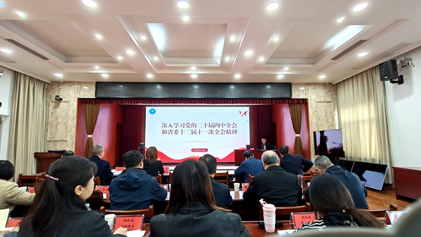 12月8日下午,省委统战部副部长、省工商联党组书记庄光明宣讲深入学习党的二十届四中全会和省委十二届十一次全会精神,省工商联机关全体人员及直属商协会党务工作者参加宣讲会,我会党办副主任郝兆会参会学习。